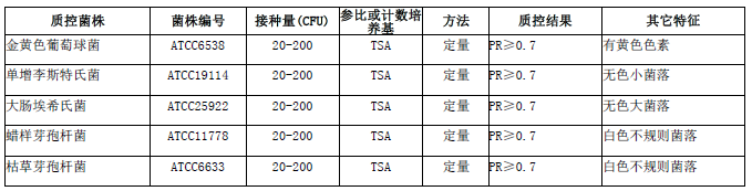 按標簽用法制備培養基,接種以下質控菌株,放置36±1℃需氧培養24小時。