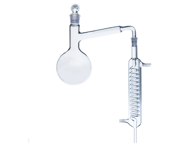 蒸餾器是利用蒸餾法分離物質的器具。其造型由具塞圓底蒸餾燒瓶與一支蛇形冷凝管經磨砂配套而成。而原理則是利用蒸餾方法使不同沸點的混合液在蒸餾燒瓶內逐漸地蒸發,并不斷將生成的蒸氣移出,在冷凝管內冷卻,使混合物達到分離提純目的。適用于自來水廠、防疫站、科研單位實驗室對水質進行分析、各種有機溶劑的分餾提純。