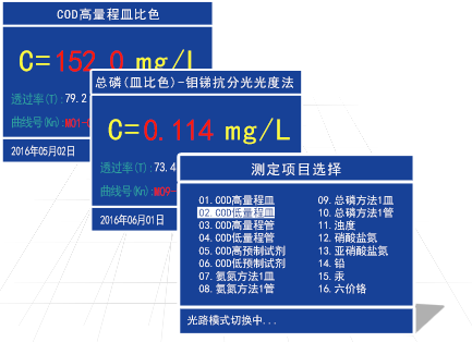 直接測定化學需氧量(COD)、氨氮、總磷、濁度等多項參數,濃度直讀