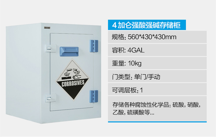 強酸堿儲存柜具有耐強酸、強堿與抗腐蝕。適用于實驗室各類化學品及器皿的安全存儲。
